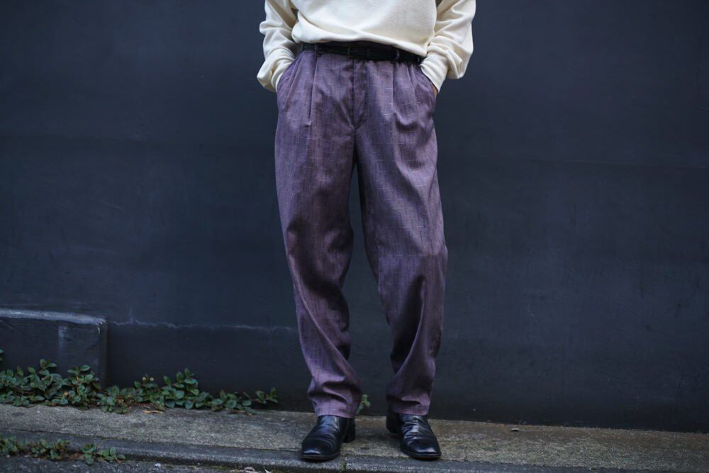 2-tuck trouser pants with a light rayon polyester fabric.