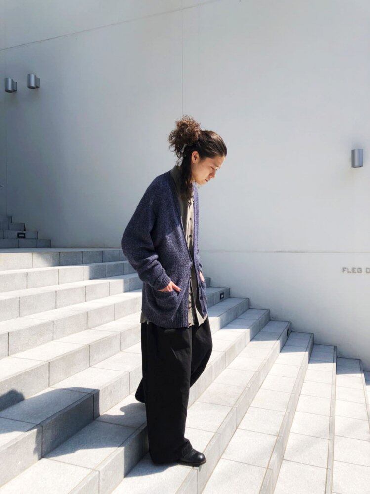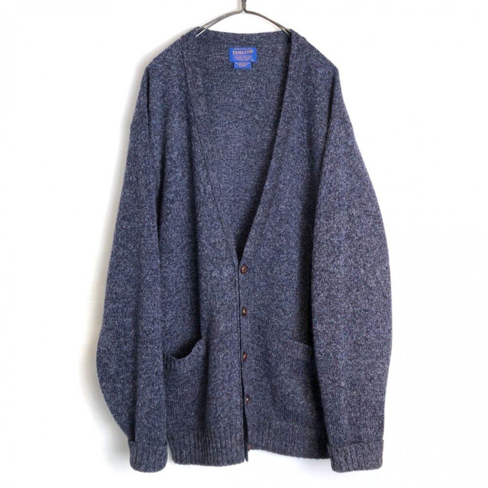 90s Pendleton cardigan gray with cool colors of navy and purple MIX color is very good atmosphere Pendletons high quality 100% Shetland wool knit Moderately loose good size & good silhouette vintage cardigan hand pocket It is the first place that is easy to use with