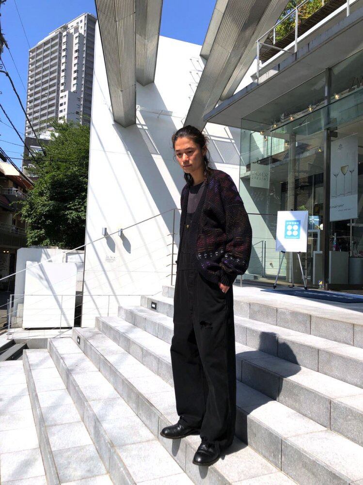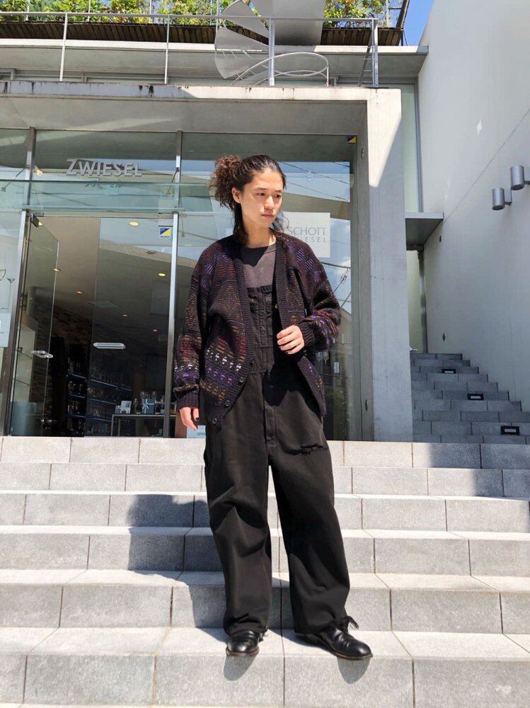 Argyle-like design with various shades such as red and brown mixed with 80s cardigan black 100% acrylic knit that feels light with a smooth touch Good size & good silhouette cardigan, autumn For a light coat