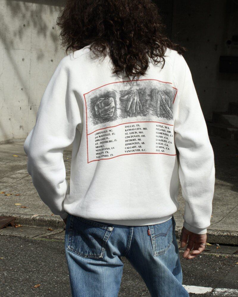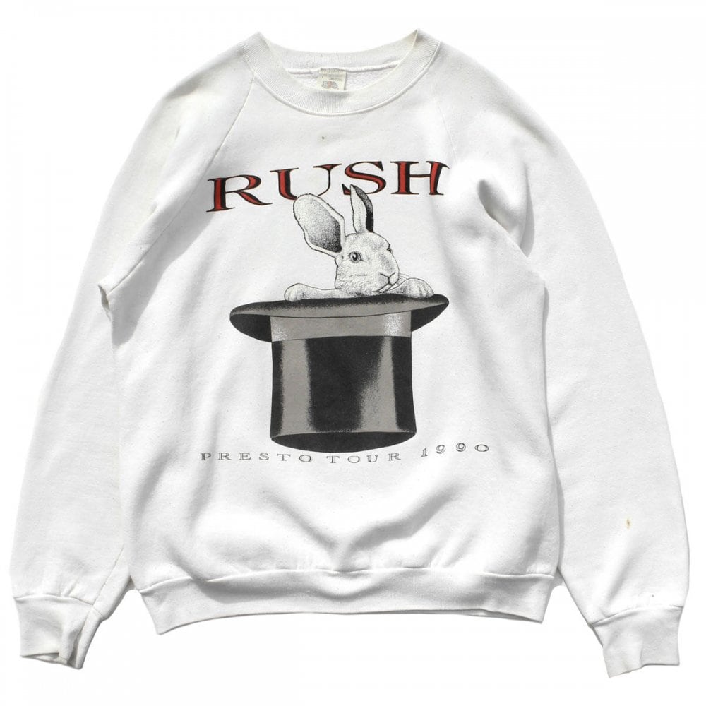 Tour promotion sweatshirt for the 1989 album PRESTO. This is a bands sweatshirt that is rare and rarely comes out. The front design of the top hat and rabbit is the motif used for the album jacket and has an impact. The fruit 50/50 cotton / polyester body has a soft texture that is typical of this age. L size with a clean silhouette. There is aging, but there is no damage. Since it is an old product, it rarely deteriorates over time. Please check the photo and understand the characteristics of Vintage before purchasing.