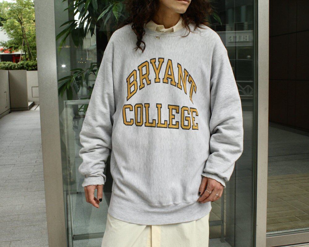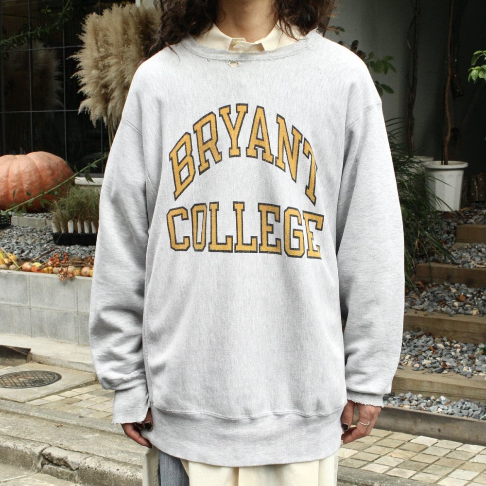 Champions reverse weave and pullover sweatshirts from the 1990s. Bryant Universitys Varsity Print, an individual that is quite aged and has an atmosphere that can only be experienced in second-hand clothing. The color is silver gray, and it is a precious XL size with a loose silhouette. Since it is an old product, it rarely deteriorates over time. Please check the photo and understand the characteristics of Vintage before purchasing.