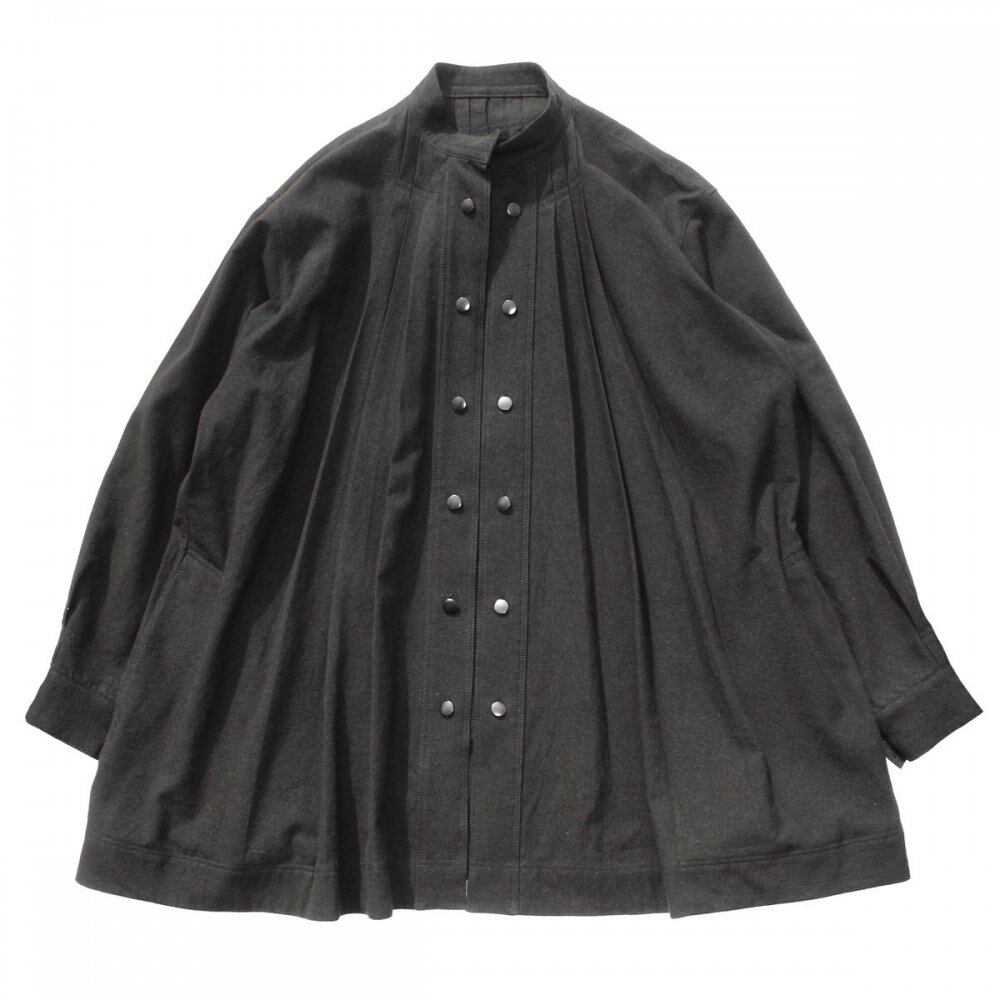 [ALVISTA] 3rd issue Vol 3. The motif is a work smock that was made in France in the early 20th century using a material called doge (a cheap cloth made by mixing wool with cotton and linen). A middle-length shirt featuring a unique A-line silhouette like a church smock that spreads from the collar to the hem with a tuck on the front and back collar to take a large amount. The button uses this nut button made from the body of Tagua palm.