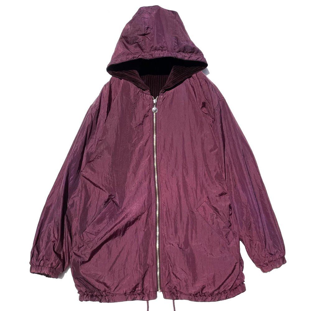 Elegant glossy corduroy fabric and nylon reversible specifications.
