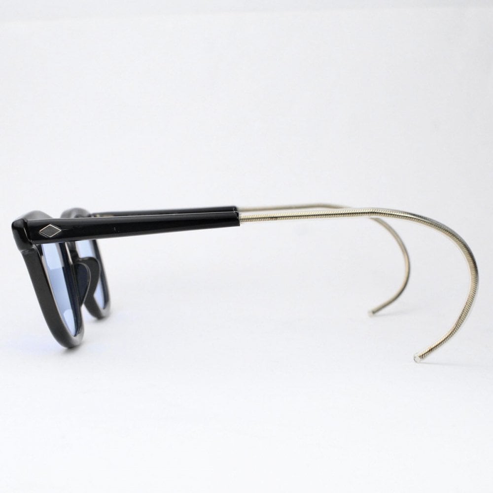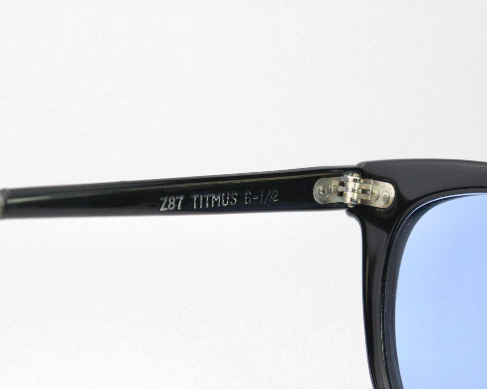 Vintage [TITMUS] glasses around the 1960s. TITMUS Optical is a long-established manufacturer that started producing optical lenses in 1908 and expanded its business including sunglasses and safety frames in the 1950s and is inherited even today. Safety eyeglasses used in factories at that time are popular reasons including sampling in recent years, such as their old feeling and the simplicity of the Wellington type because of their industrial design. In addition, the design of the hinge called UFO hinge peculiar to TITMUS and the silhouette with a corner that characterizes the keyhole bridge are also important points. This is probably an old type that can be fixed to the ear where the temple has a wire end. A valuable black frame in the safety that the grayish clear closes the share. * Small cracks on the left temple hinge. We have newly added a light blue color UV lens. Appraised at a spectacle store, maintained, and the temple (or rope) can be adjusted in size for bending. (At a spectacle store near you) We have scrutinized the condition, but since it is a vintage item, there are threads and scratches. Please purchase after understanding the characteristics of vintage and antique. All of our eyeglasses are maintained and lens replaced at the optician g room in Ebisu, Tokyo.