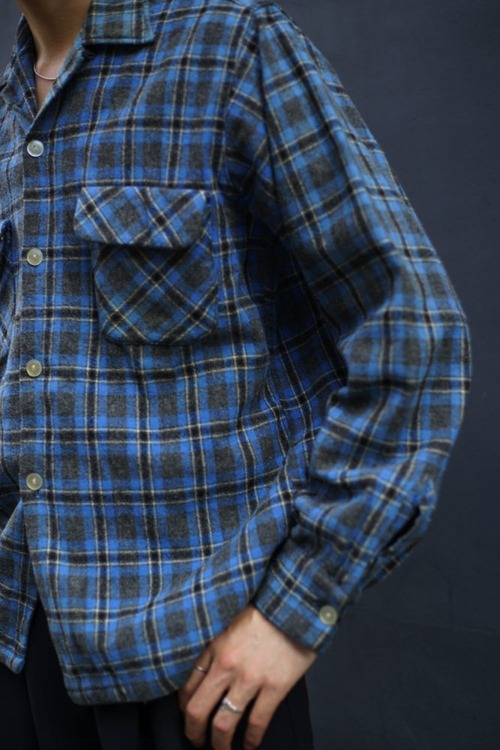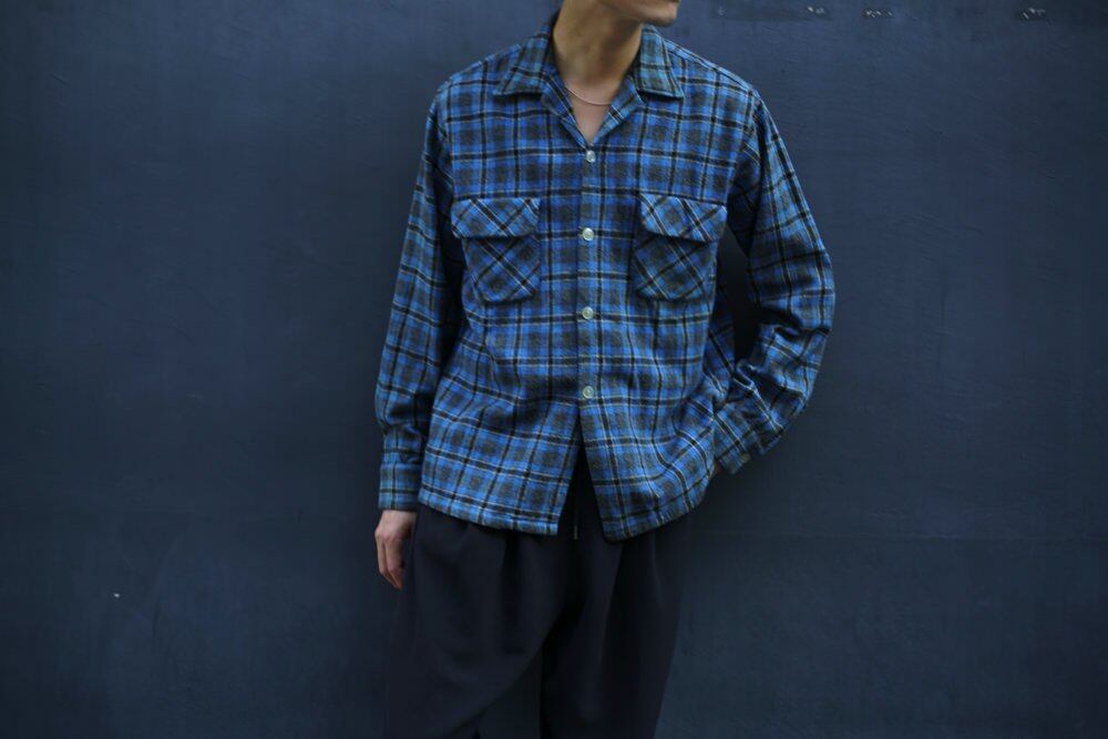 Around the 1960s, this is a vintage open collar wool shirt.