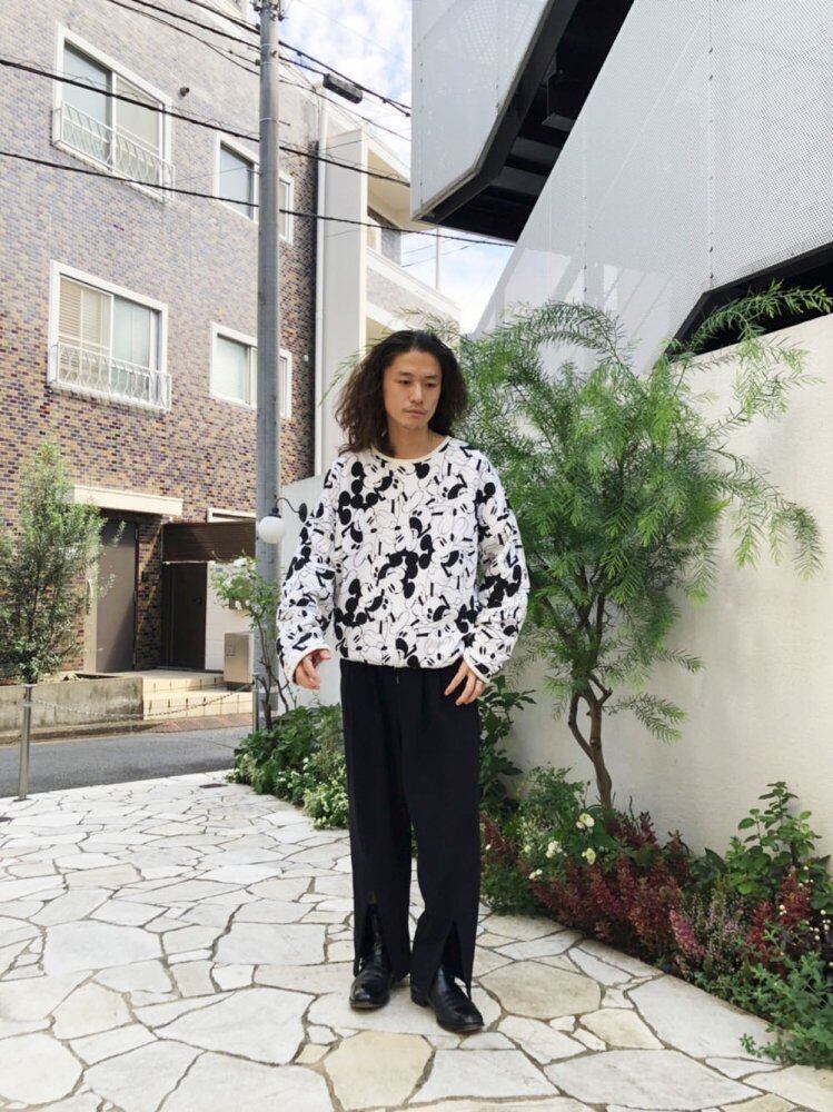 90s reversible sweatshirt A soft cotton fabric like a gauze that you can enjoy with a completely different look on the front side where the story of comical Mickeys is drawn in pastel shades and the back side in white x black monotone color Lightly padded and fluffy, comfortable and loose over-silhouette with a cute atmosphere