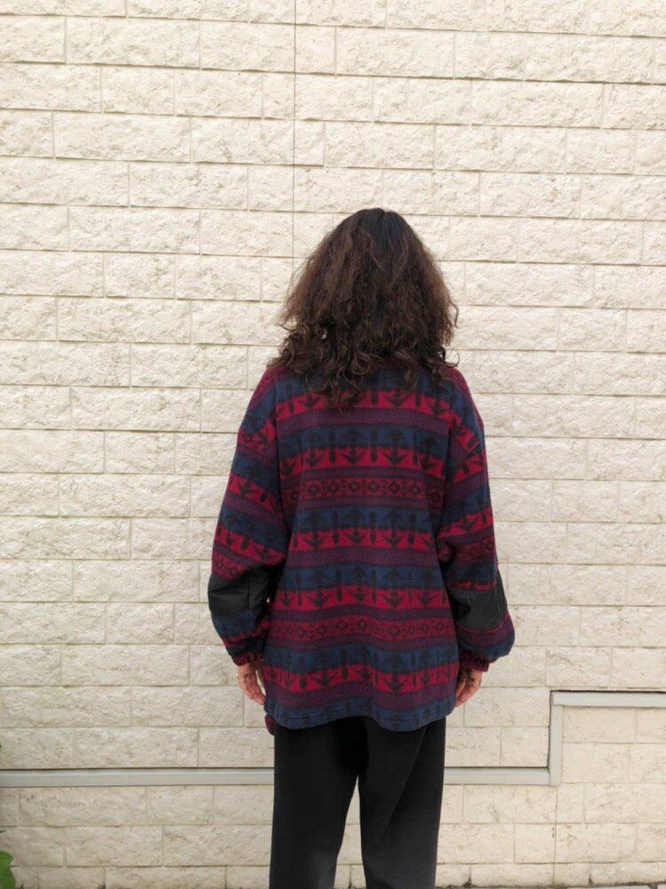 90s pullover fleece jacket A dark red color with a loose and voluminous over-silhouette atmosphere, and a design that is partially switched with nylon. A soft and soft fleece fabric that is light and comfortable to wear. It is the first place that creates a fluffy and voluminous feeling.