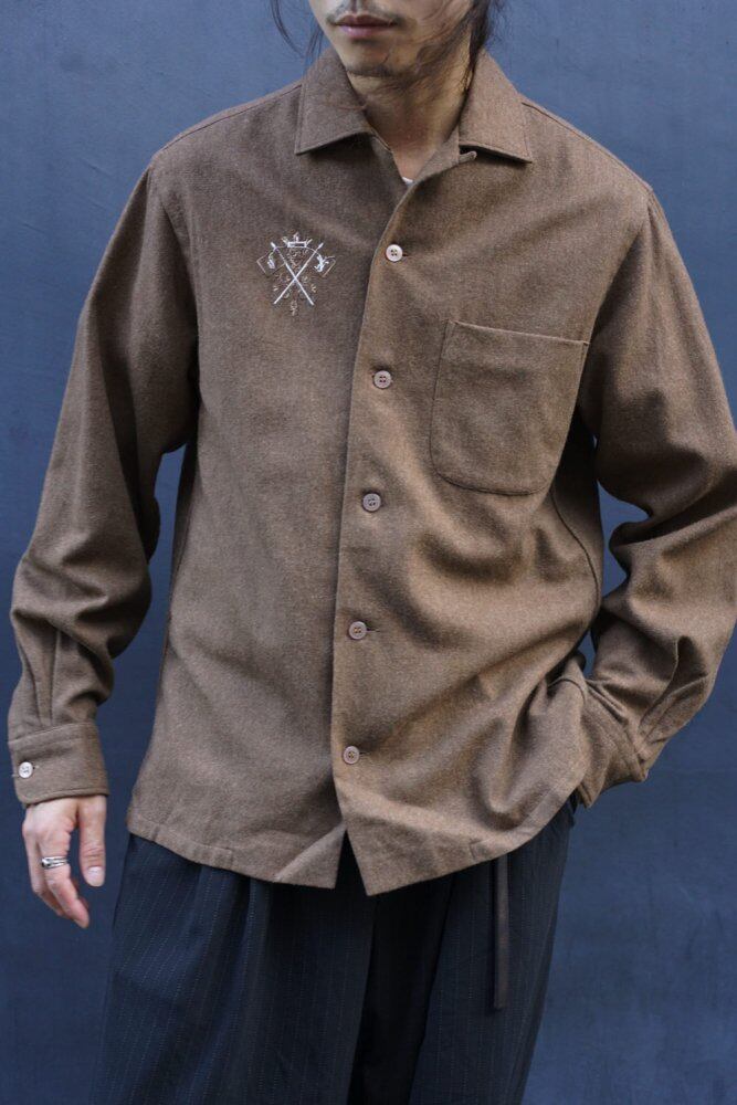 It features a brown body with a dull tone unique to vintage, a design with emblem embroidery on the chest, and a sophisticated design with a jazzy atmosphere while following the vintage style of the 1950s.