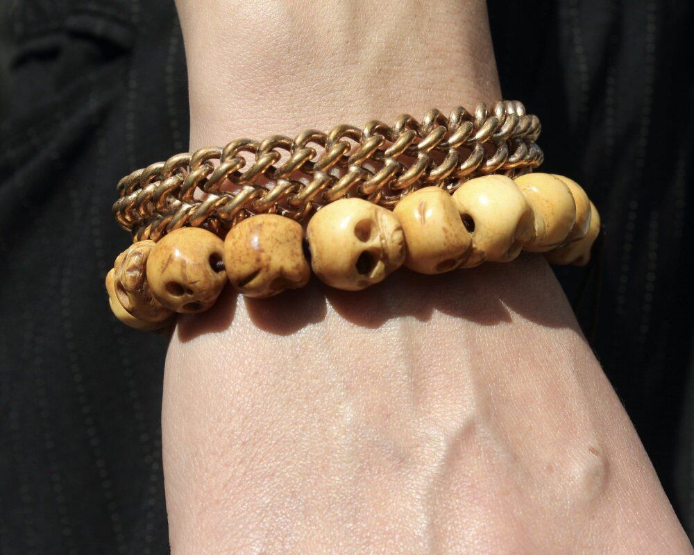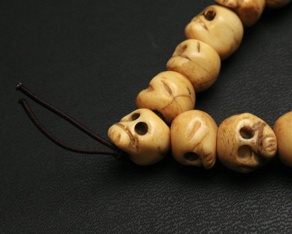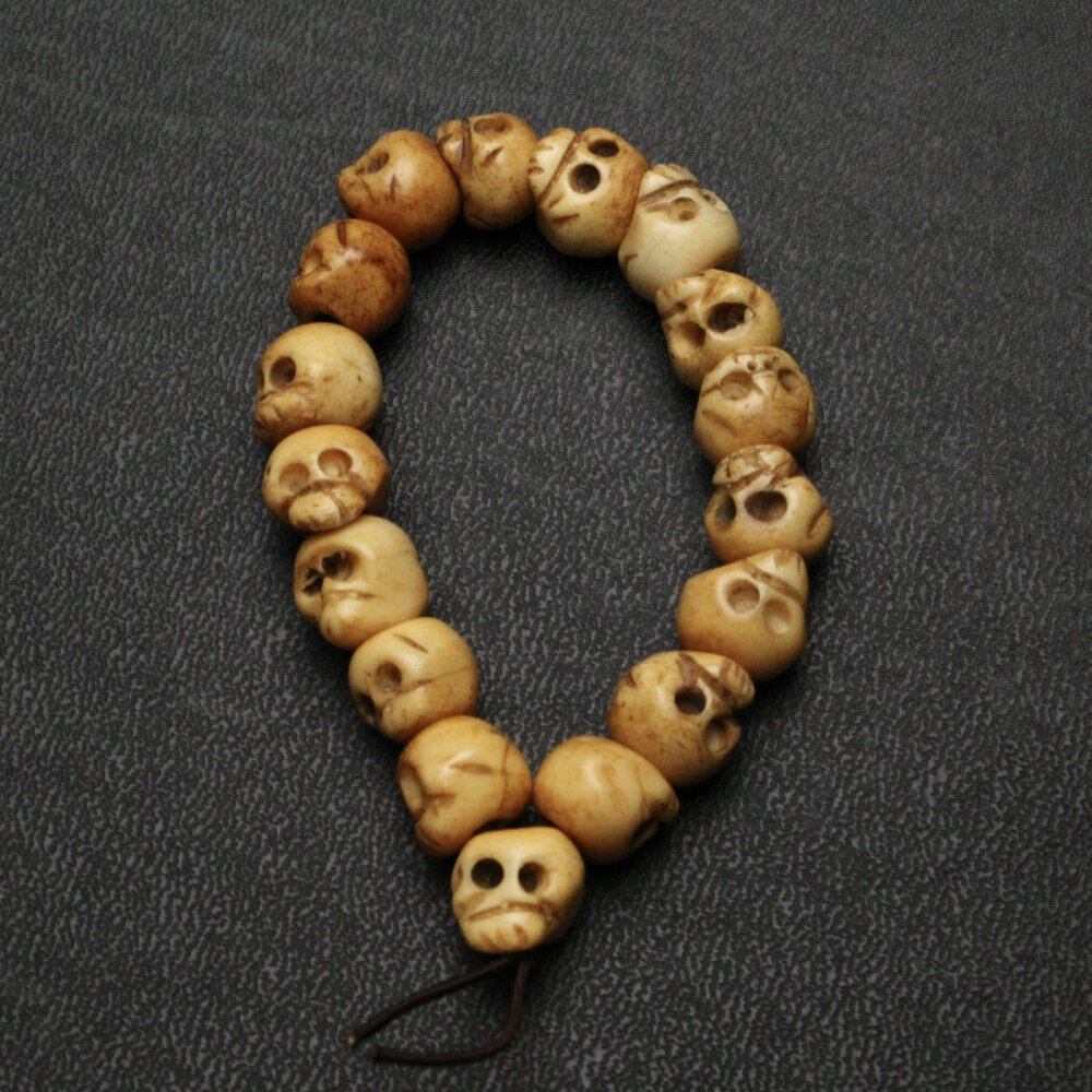 Since 2500-3000 years in Mexico, it has been customary to decorate ancestral skeletons around us, and we decorate them on the day of the dead and celebrate them. Calavera is also thought to represent freedom as a symbol of death and rebirth. In Chicano tattoos, you will feel close to the death that will come someday, so it is also expressed as a symbol that brings luck. An item that is shaped from animal bones and has a unique and kitsch look. It has a natural texture over the years and has a nice atmosphere with just the right amount of shine. The rubber band makes it easy to put on and take off. Since it is old, it may be dull over time and have minor scratches. Please check the photo and understand the characteristics of vintage before purchasing.