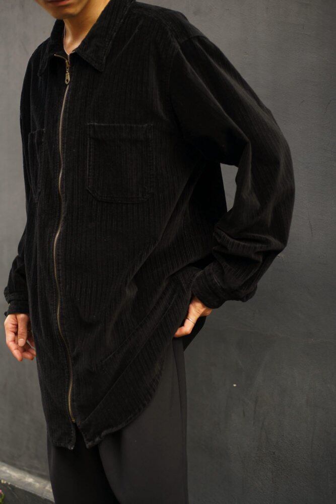 A zip-up corduroy shirt that is as long as a coverall.