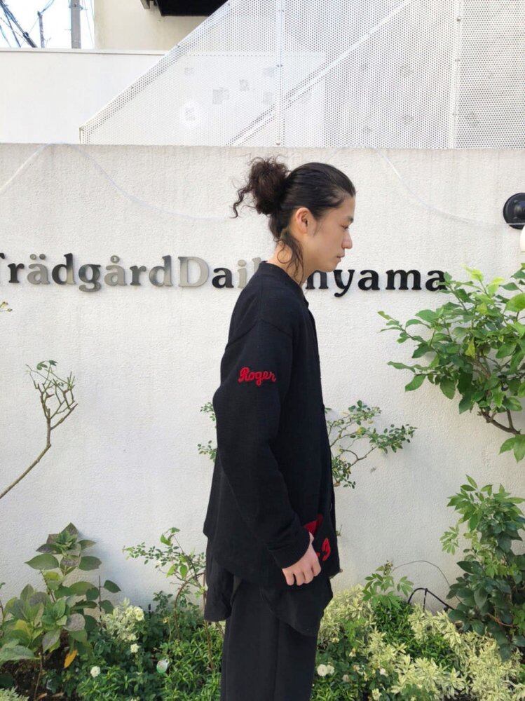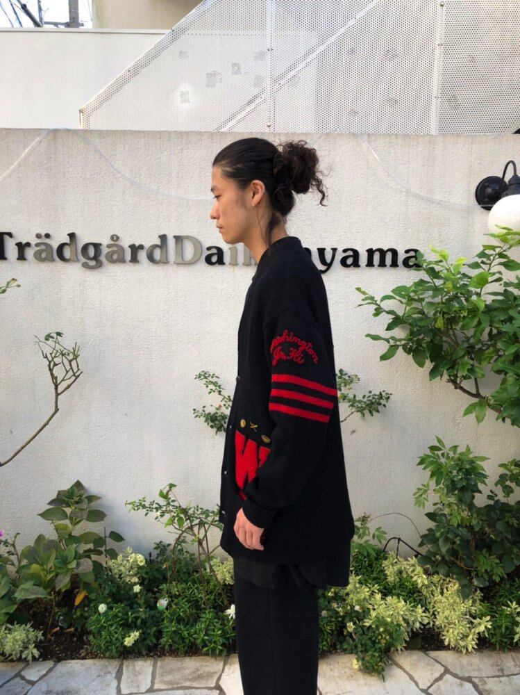 Vintage lettered cardigan of the 60s Vintage cardigan with a slightly long silhouette with a cool color scheme of black and red, embroidery with atmosphere and a feeling of emblem just size