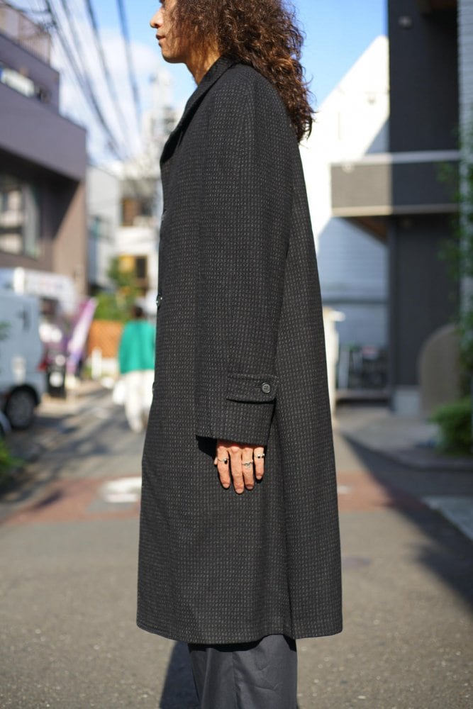 Wool tweed, which is characterized by a fine hound tooth check woven pattern, is used for the fabric, and the quality is so good that you can feel a slight luster.