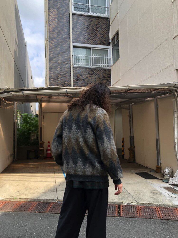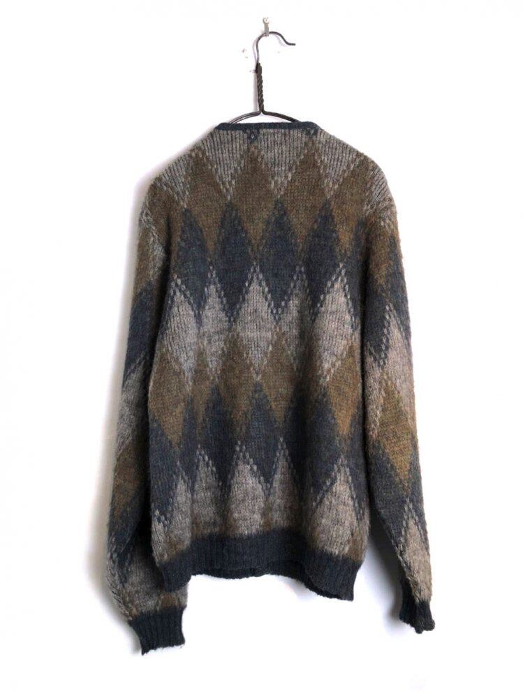 60s vintage cardigan Khaki, olive, gray argyle cardigan wool x alpaca soft and soft high quality vintage knit It is the first place with a moderately spacious size and a very good silhouette.