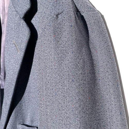 Wool gabardine fabric with red and blue nep-like threads is used for the gray body, and the pad and hair core are removed from the tailored fabric and washed in our shop, which is light and soft with air. It has become.