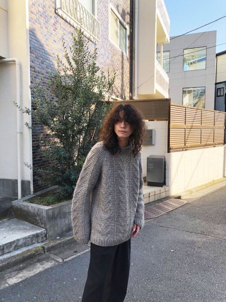 80s Aran Sweater A rough hand-knitted Aran knit with a three-dimensional stitch pattern. A relaxed vintage sweater with a relaxed size and a relaxed atmosphere. Oatmeal color with a calm atmosphere.