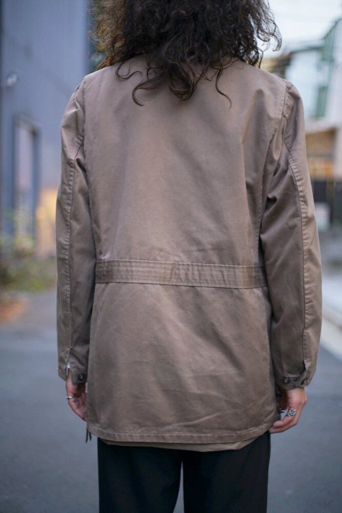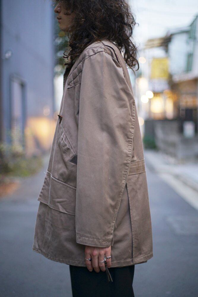 The first place that you can feel the simple and sturdy genuineness of the hunting jacket with a slightly firm texture.