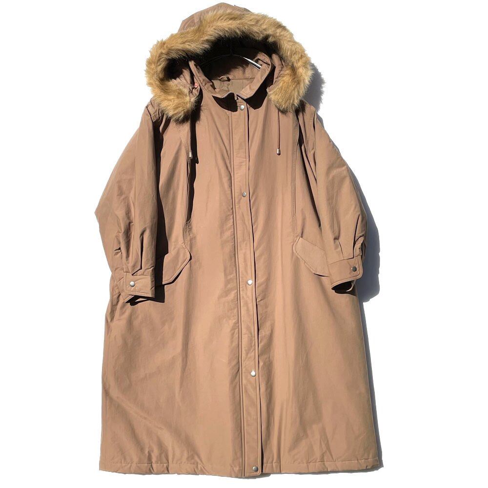 Real fur is arranged in the hood part, and the luxurious looks and elegant coloring of pink beige give a calm impression.
