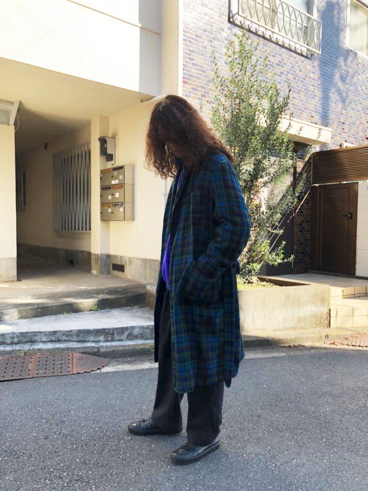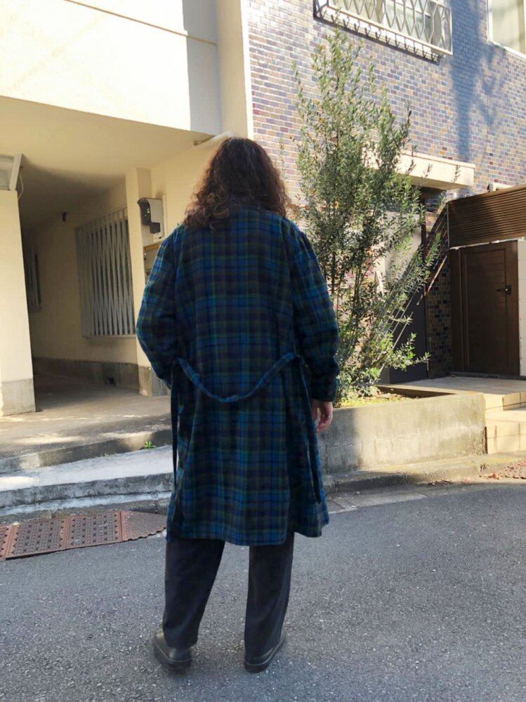60s Pendletons wool gown blue x green check pattern with a nice color The size is not too big and it is a good silhouette with a moderate amount of space. 100% wool fabric with a soft texture.