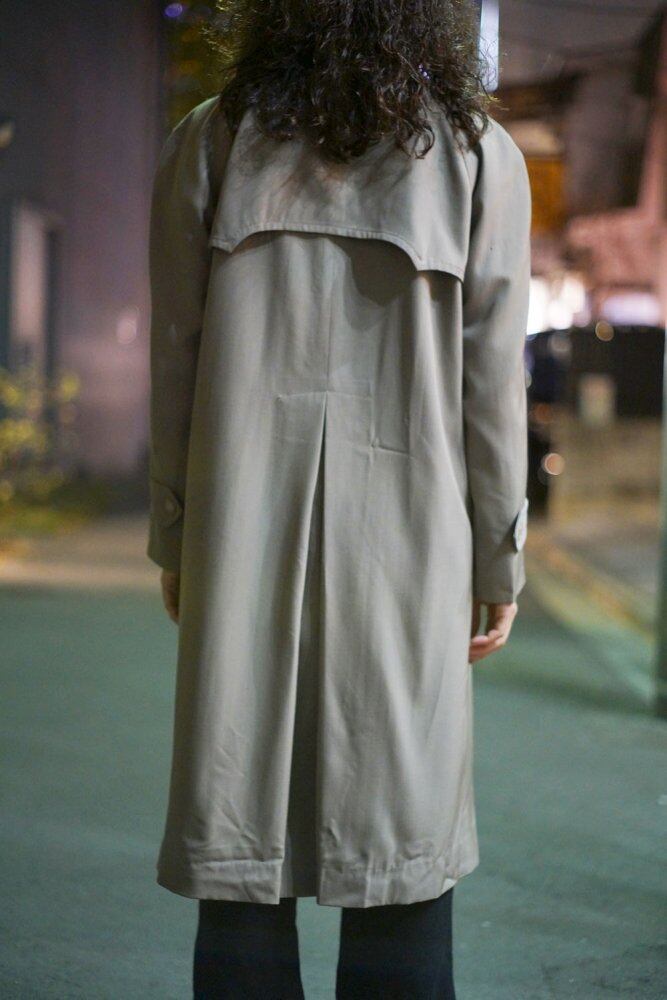 Around the 1970s, it is a vintage gabardine coat. It is an elegant pink beige color gabardine fabric with a slight redness, and it produces a beautiful drape with a moderate elasticity and a supple feeling of falling.