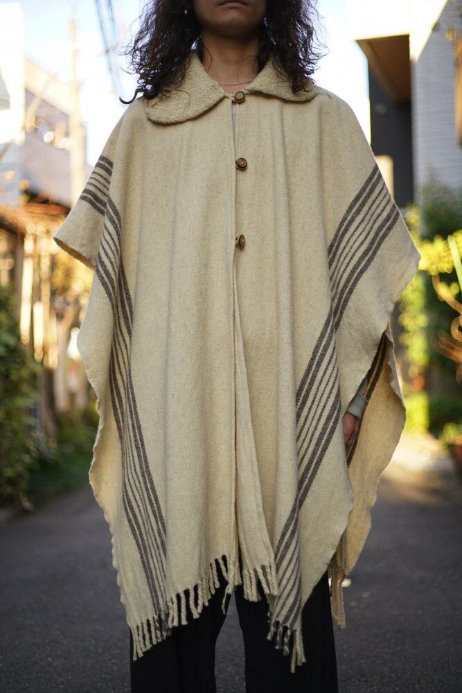 A design with a large shawl, a knit collar and buttons. The combination of knit and wool gives it a luxurious look like a coat.
