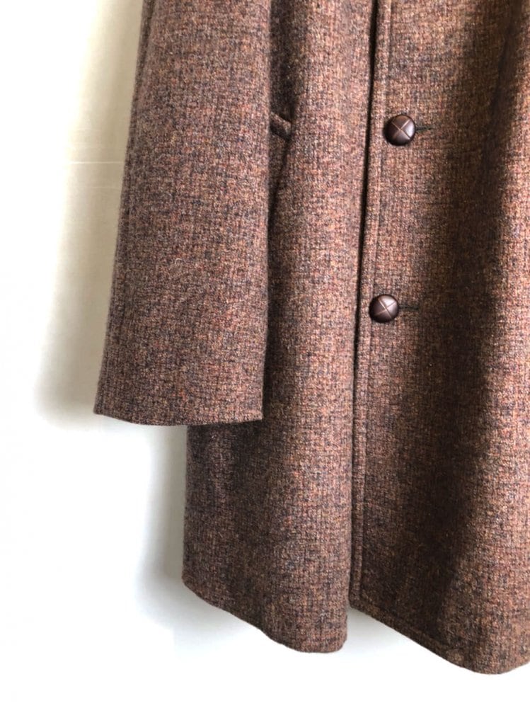 70s Pendletons Wool Coat The vintage-like astringent grayish Azuki Brown has a very nice atmosphere. The high-quality wool fabric with various shades is not too big and the size is not too big. It is a good silhouette one. It is a half-length coat with a length above the knee that is easy to match.
