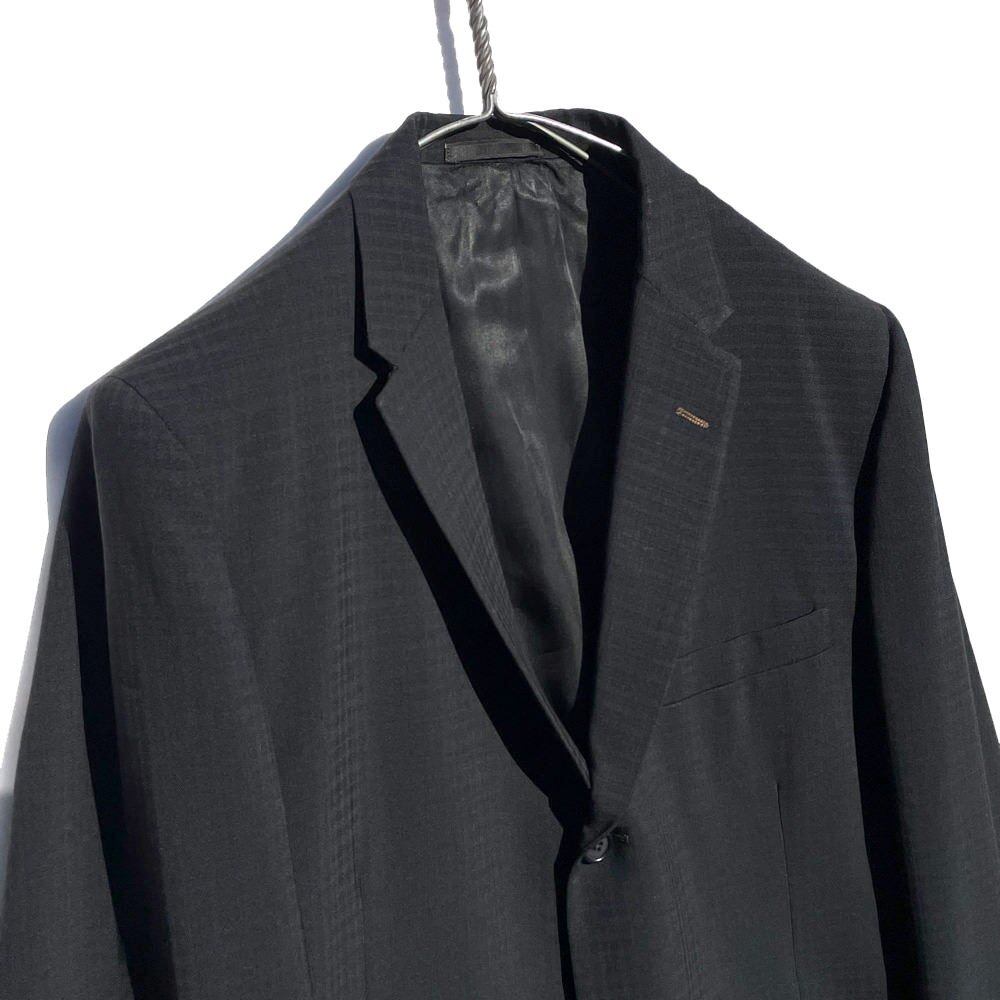 The jacket has a three-button design with a vertically long silhouette of a box with a shallow center vent, the trousers have a clean waist with no tuck, and the slightly tapered lines make it look classic.