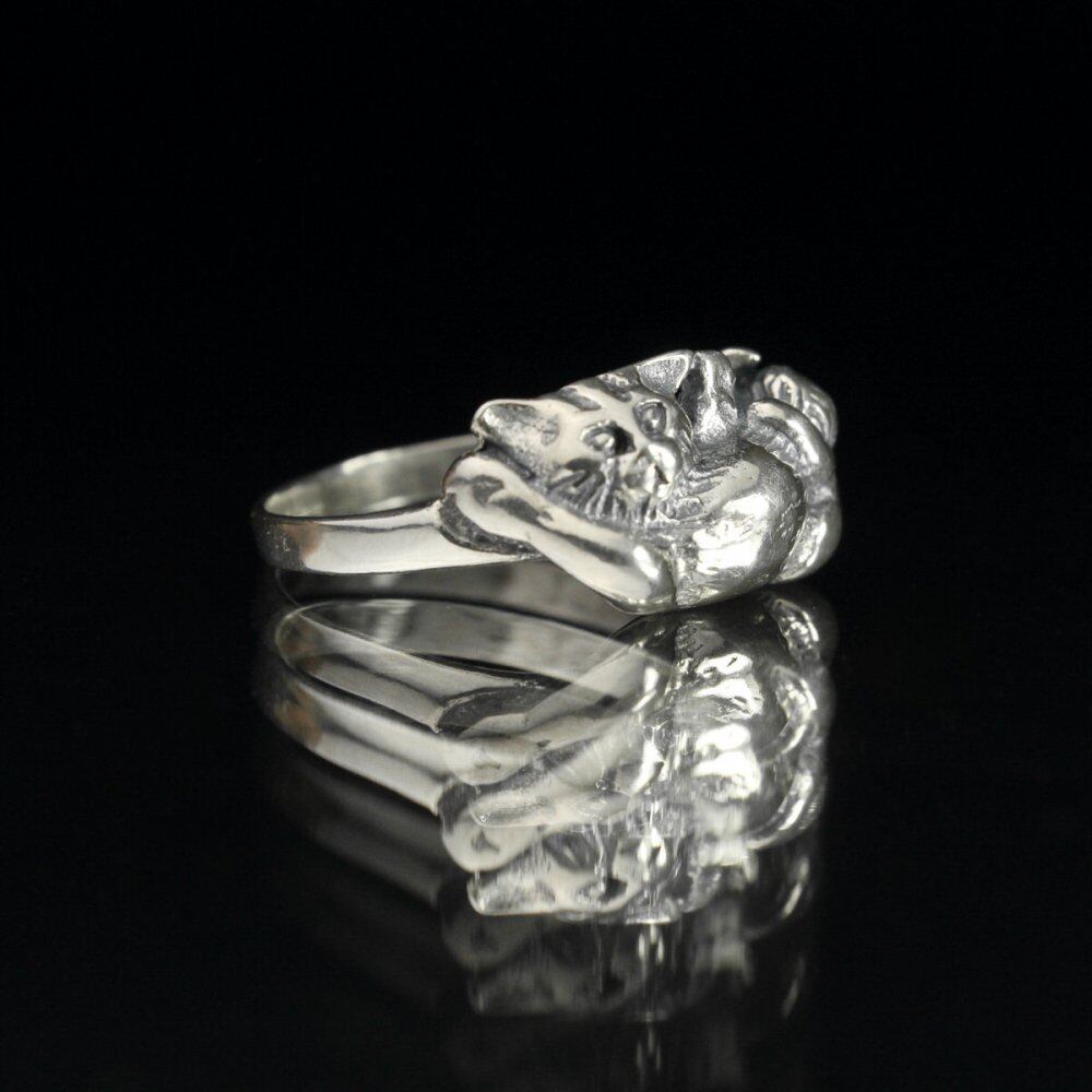 Vintage ring with a cat motif. A kitsch look with a somewhat naughty design. Its not too big and has a strong presence, so its an item that seems to be attached to you. 925 engraved, sterling silver. Please check the condition in the photo and purchase after understanding the characteristics of vintage.