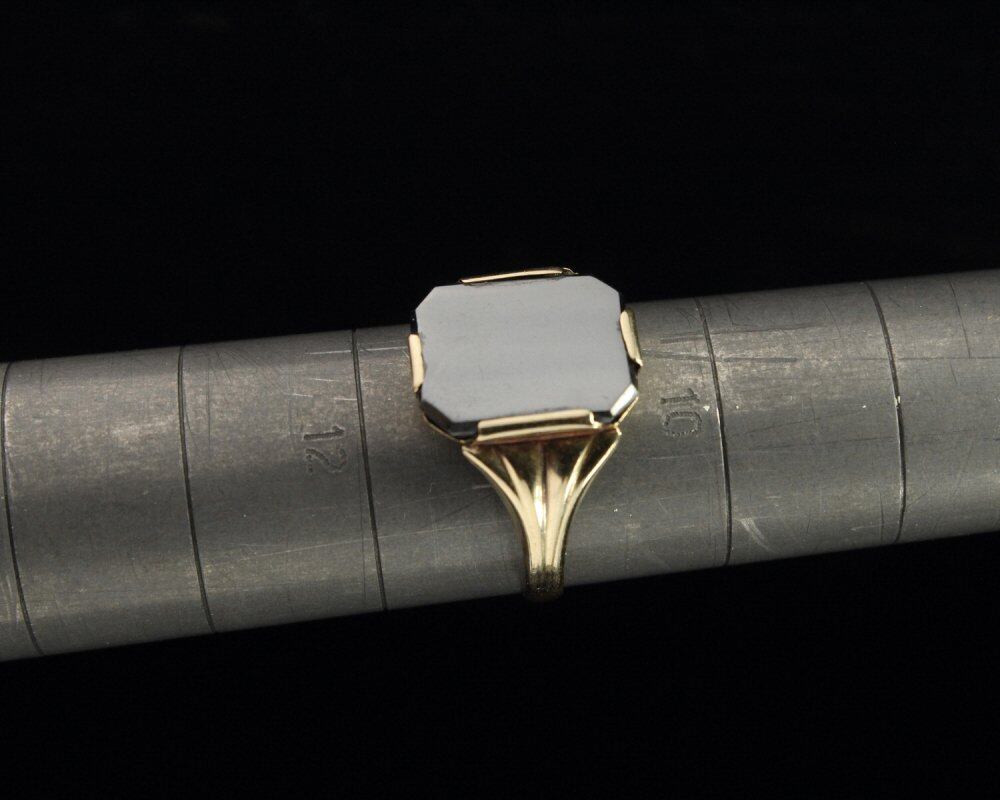 British made signet ring. It is the only ring that is allowed to be worn among British gentlemen who wear good things that can be used for a long time with as little waste as possible. Perhaps from the perspective of its construction, it has a minimalist appearance with hematite added to its simple shape, which was designed around the 1930s. The flat square design makes you feel like a cocktail ring. Please check the condition with the engraved photograph of 585-14ct gold and purchase it after acknowledging the characteristics of vinteg.