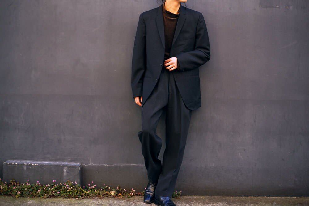 The narrow V zone that seems to be in the 1960s, the box silhouette makes you feel the profound atmosphere of vintage, and the deep black looks sexy.<BR> While the mannish of the box silhouette at that time remains, the soft lines along the body due to the softness of the fabric, the silhouette has a relaxed feeling.