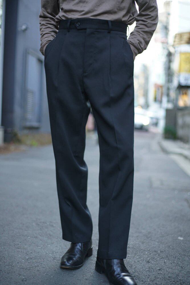 Two-tuck trouser pants with a comfortable polyester rayon fabric that is soft and supple.