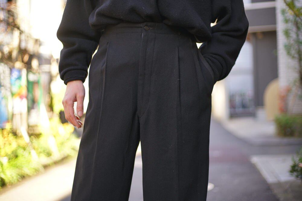 The straight silhouette that falls from the loose waist of 1 tack with a beautiful line, and the piping on the side is also an elegant impression.