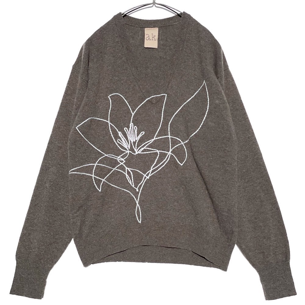 Based on PENDLETONs vintage V-neck knit, line art embroidery of lily flowers, all hand-embroidered remakes.