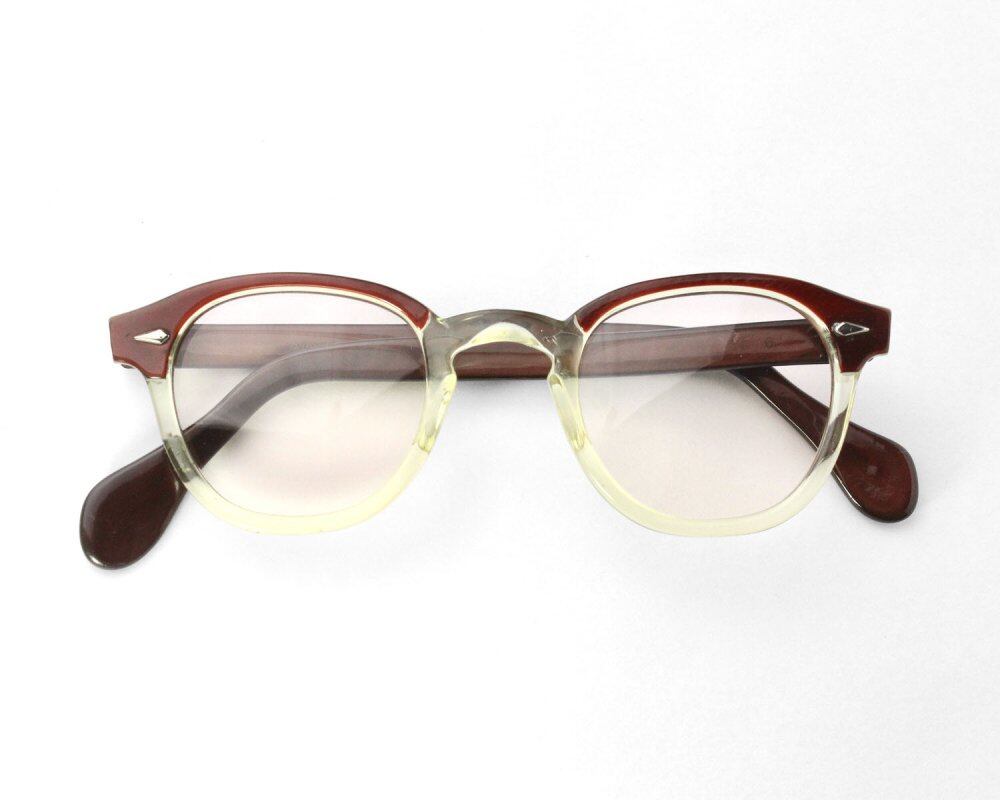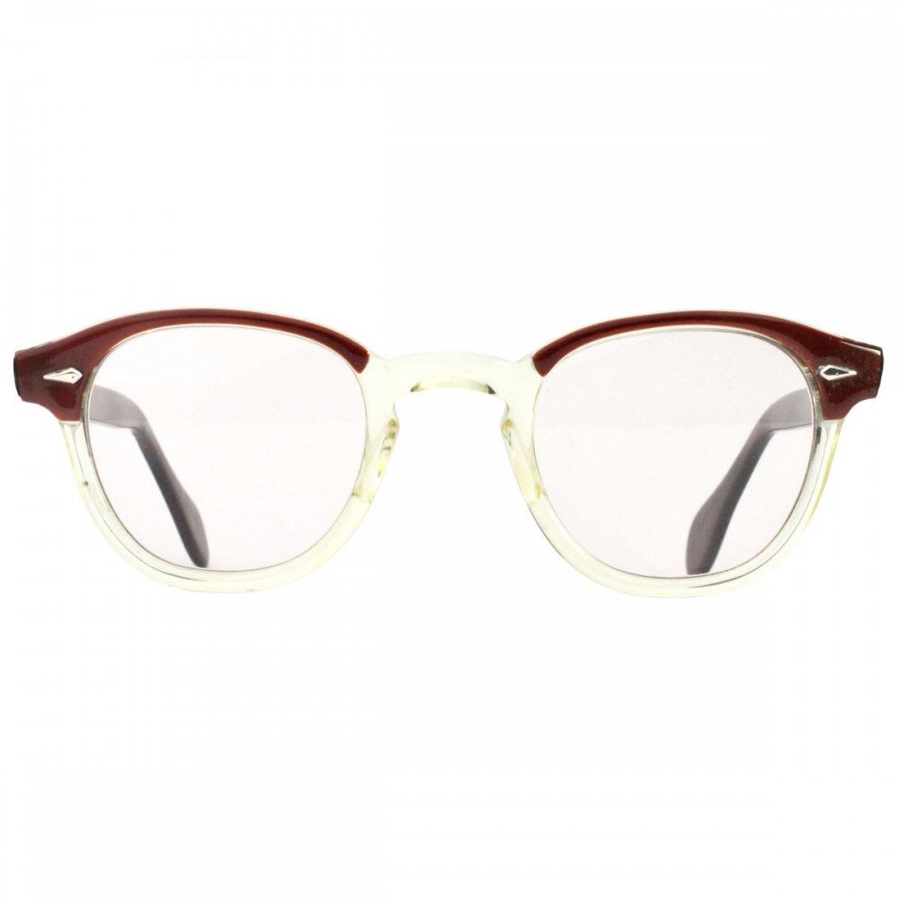 From the American Optical model times and AO logo, it seems to be the type from the late 50s to the early 60s. Equipped with a red dot screw system that produces appropriate tension and drops of screws used from 1955 to this age. Like the model JAZZ, it features a silhouette closer to the turtle optical Arnell than the frame angle is lowered. A very rare color frame of wine red and brown with a mahogany pattern that floats depending on the amount of light. It is a more vintage and elegant one with a two-tone specification with yellow clear. We have newly added a light grayish pink UV lens. Appraised at a spectacle store, maintained, and polished to give it a natural luster. We have scrutinized the condition, but since it is a vintage item, there are threads and scratches. Please purchase after understanding the characteristics of vintage and antique. All of our eyeglasses are maintained and lens replaced at the optician g room in Ebisu, Tokyo.