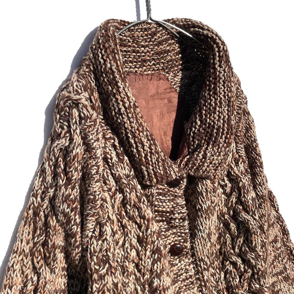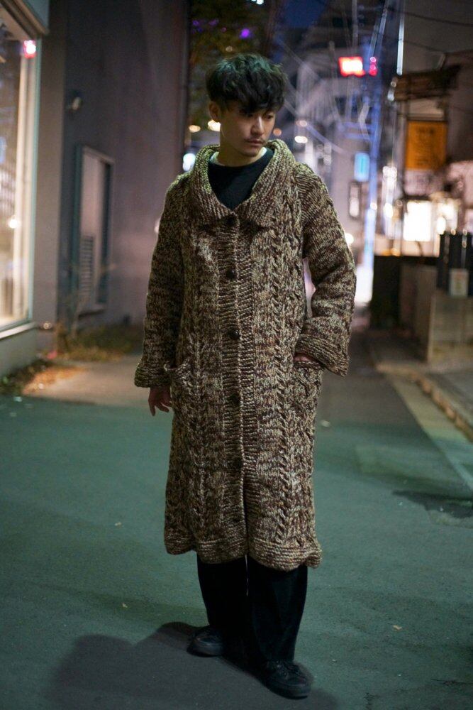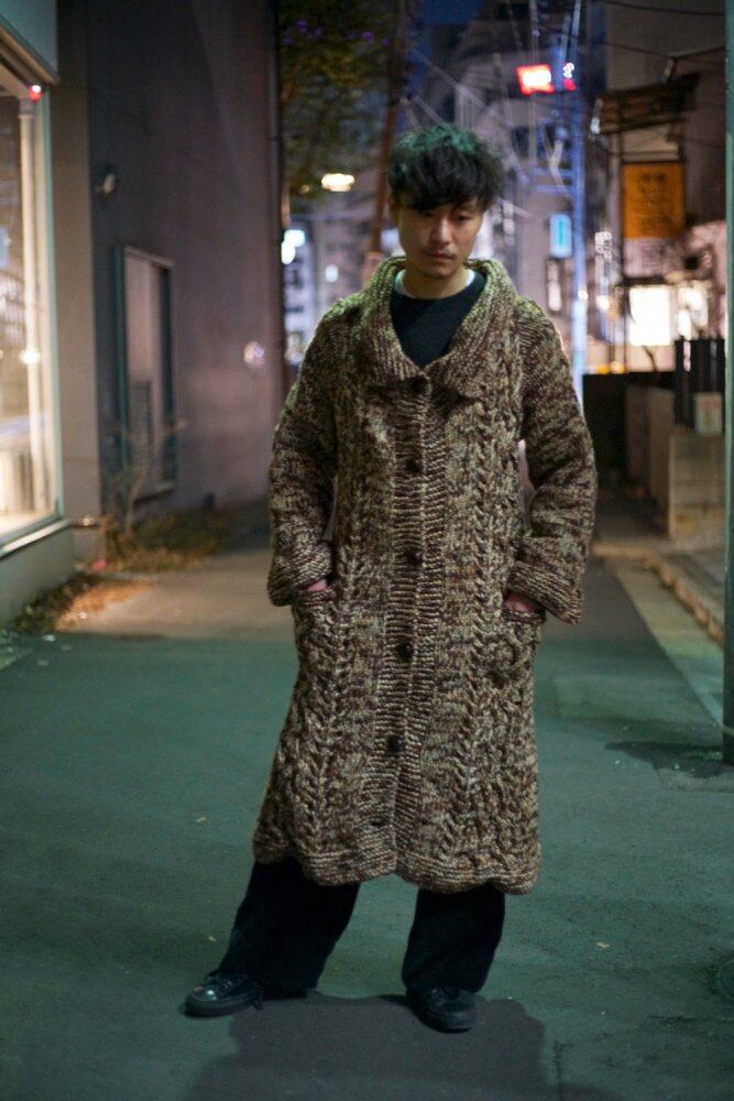 The solid weight and the three-dimensional effect of the roughly knitted cable pattern give it a luxurious appearance like a hand knit.
