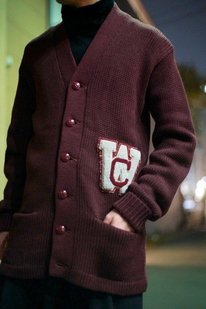 A silhouette with a relaxed feeling that is moderately long and vertically long, which is rare in vintage lettered cardigans.