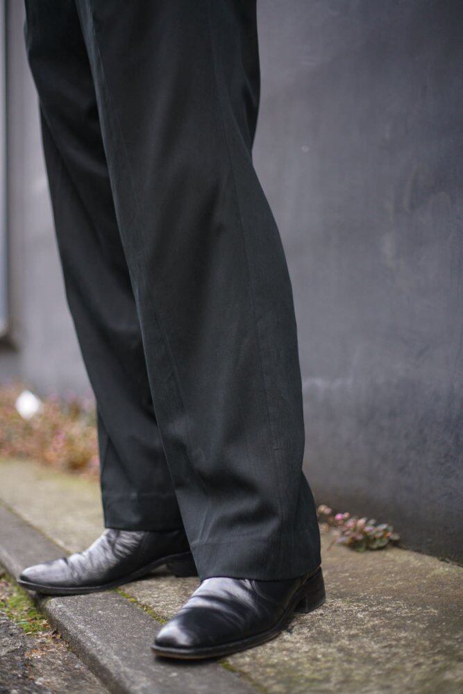 Two-tuck trouser pants with a comfortable blend of silk and rayon, which is characterized by its suppleness and moderate elasticity.