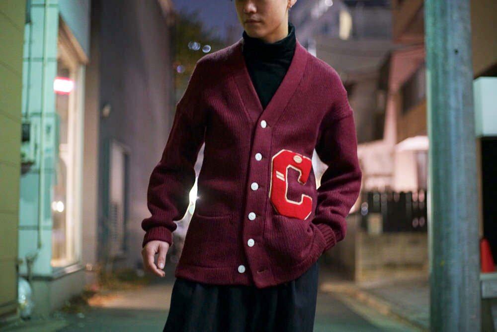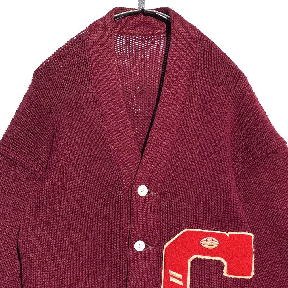 A silhouette with a relaxed feeling that is moderately long and vertically long, which is rare in vintage lettered cardigans.