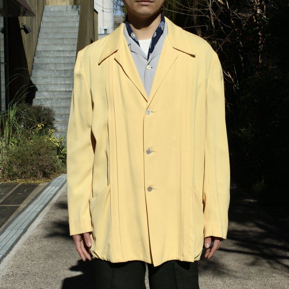 A gabardine jacket with a very rare design by McGregor. From the shape of the long point, it seems to be as close to the 1940s as possible. It is a rare piece with a unique design such as a tailored three-dimensional sleeve with a front swing, pleats in full bloom, a western yoke, and a vent like a riding jacket. It has a single-layered half-length design and is made like a casual jacket that can be worn lightly. It has an elegant cream yellow color and a vintage look. Probably 100 wool or rayon blended gabardine fabric with a drape feel is soft and can be worn for a long season. 40 size silhouette with a relaxed feeling. It is in good condition subjectively. Since it is an old product, it rarely deteriorates over time. Please check the photo and understand the characteristics of Vintage before purchasing.