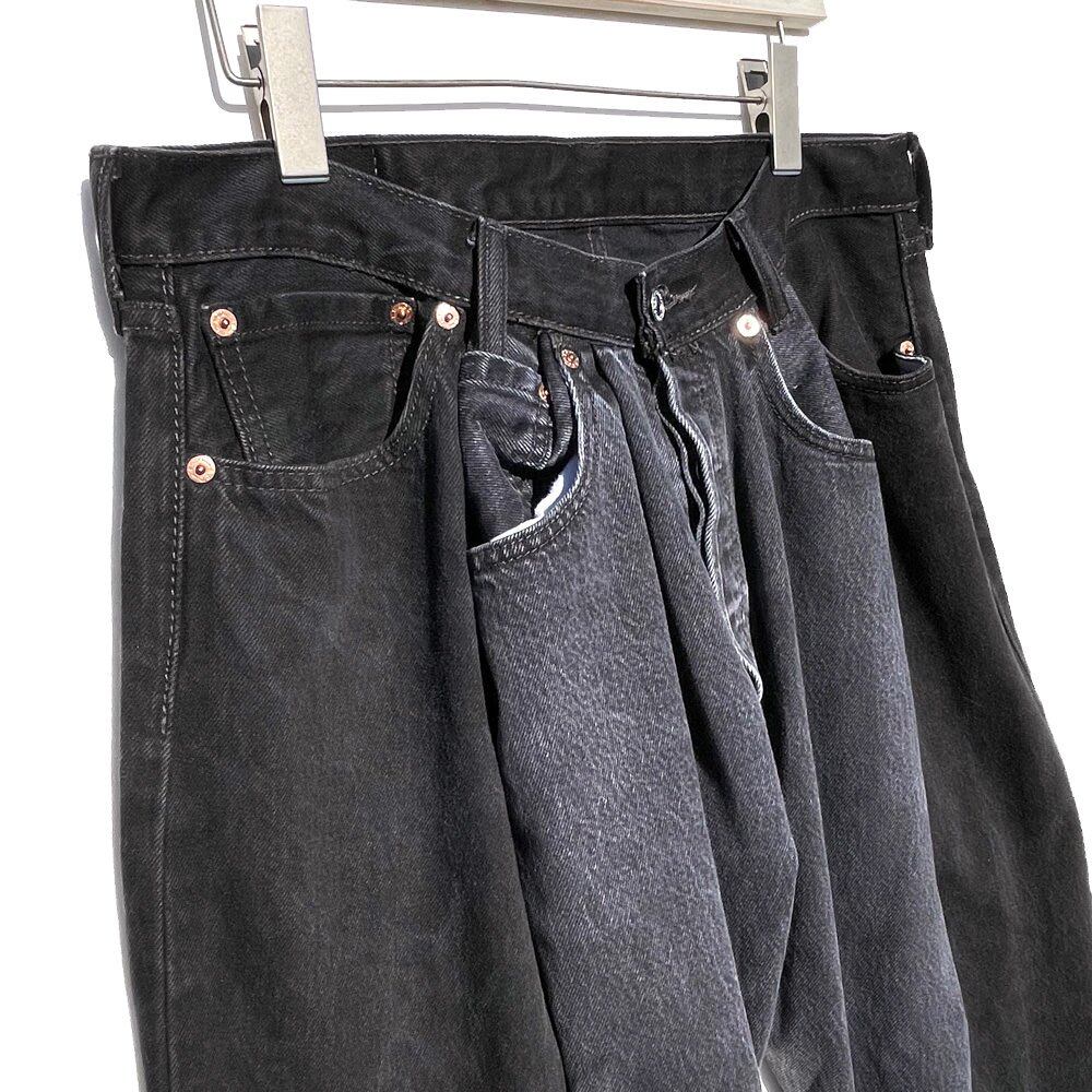 By using two pieces, it has a wide silhouette that is not found in second-hand clothes, and by setting a deep tack on the waist, it is tailored to make the volume more accentuated and give an elegant drape.