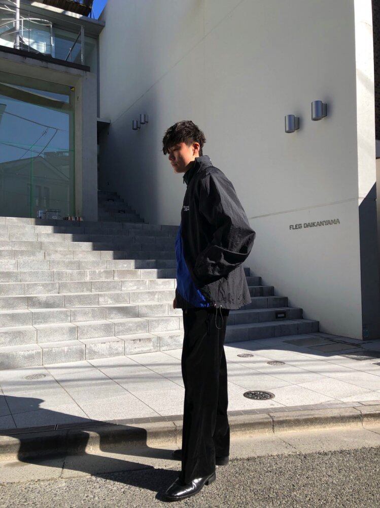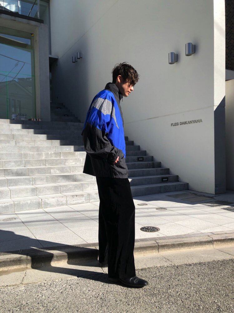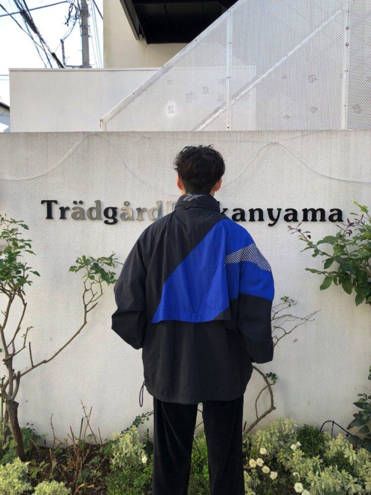 90s Reebok track jacket Thin and light 100% nylon material, one that seems to be useful as a light haori in spring. Bold switching of blue x black designed asymmetrically Active vintage sportswear with a loose over silhouette