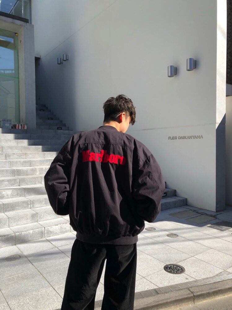 80s “Marlboro Reversible Jacket Plenty of voluminous over-silhouette jacket Marlboro embroidery on the black back and“ M embroidery ”on the bright red cuffs. It is the first place that has a cool atmosphere