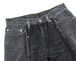 Our original pimpstick remake line wide pants. LeVIS-550, black denim dismantled and rebuilt. By using two pieces, it has a wide silhouette that is not found in second-hand clothes, and by setting a deep tack on the waist, it is tailored to make the volume more accentuated and give an elegant drape. By showing the aging condition unique to USED denim as it is, it is an item that gives an elegant impression. The hem is left uncut to make the toes look neat, and a gusset is placed in the inseam to make the front look more beautiful. Since we are remaking old clothes, there is a feeling of USED and rarely deterioration over time. Please check the photos and understand the characteristics of Vintage before purchasing.