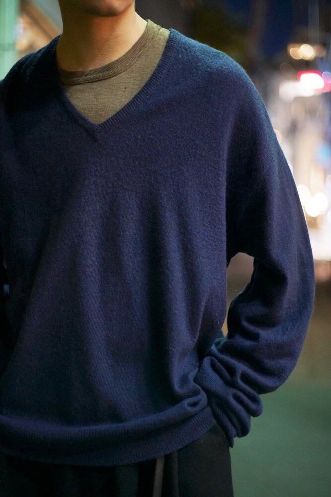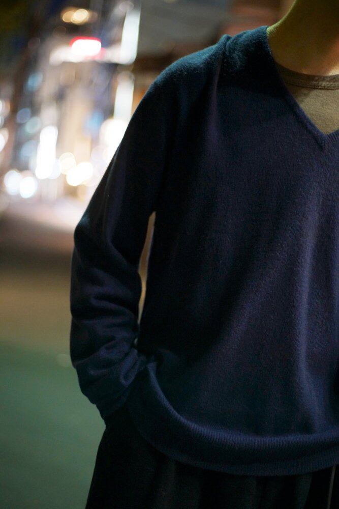 Around the 1950s, this is a 100% cashmere V-neck knit made by Pebble Beach.
