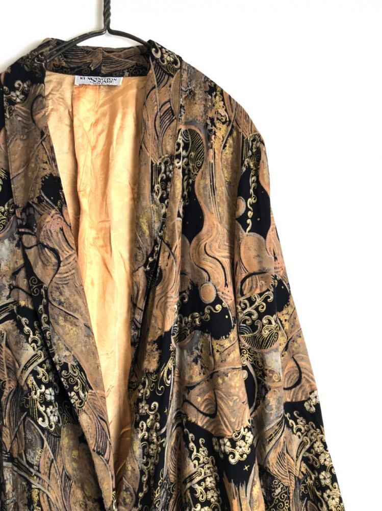 80s rayon jacket Black x grayish brown artistic pattern is a very nice atmosphere It is a thin and light 100% rayon material light jacket that is perfect for spring haori.
