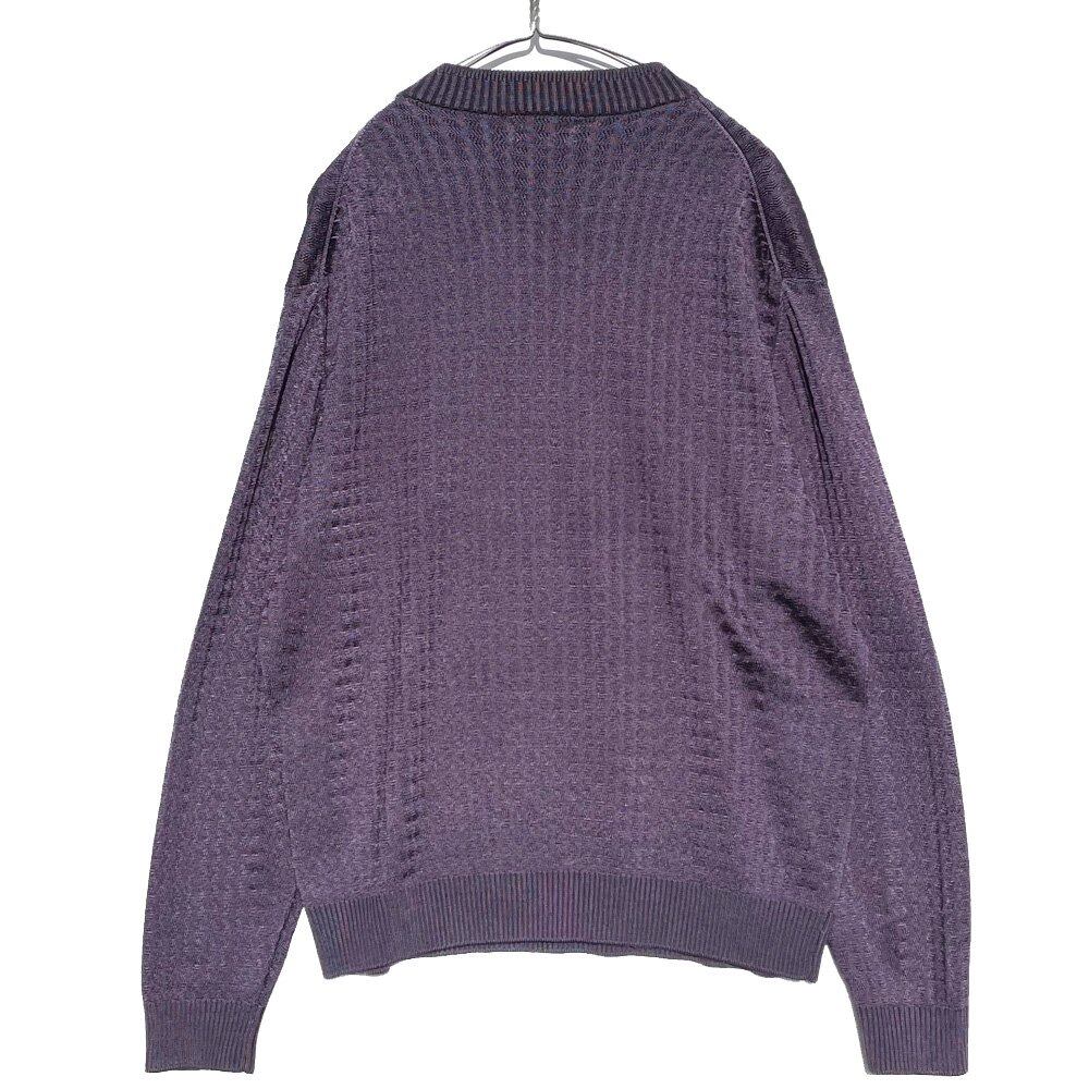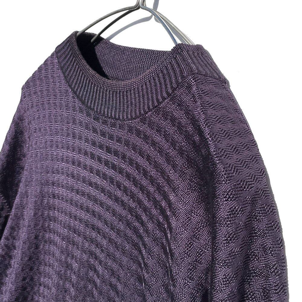 A crew neck knit featuring a silky touch of rayon base and a fine knitted fabric with undulations.