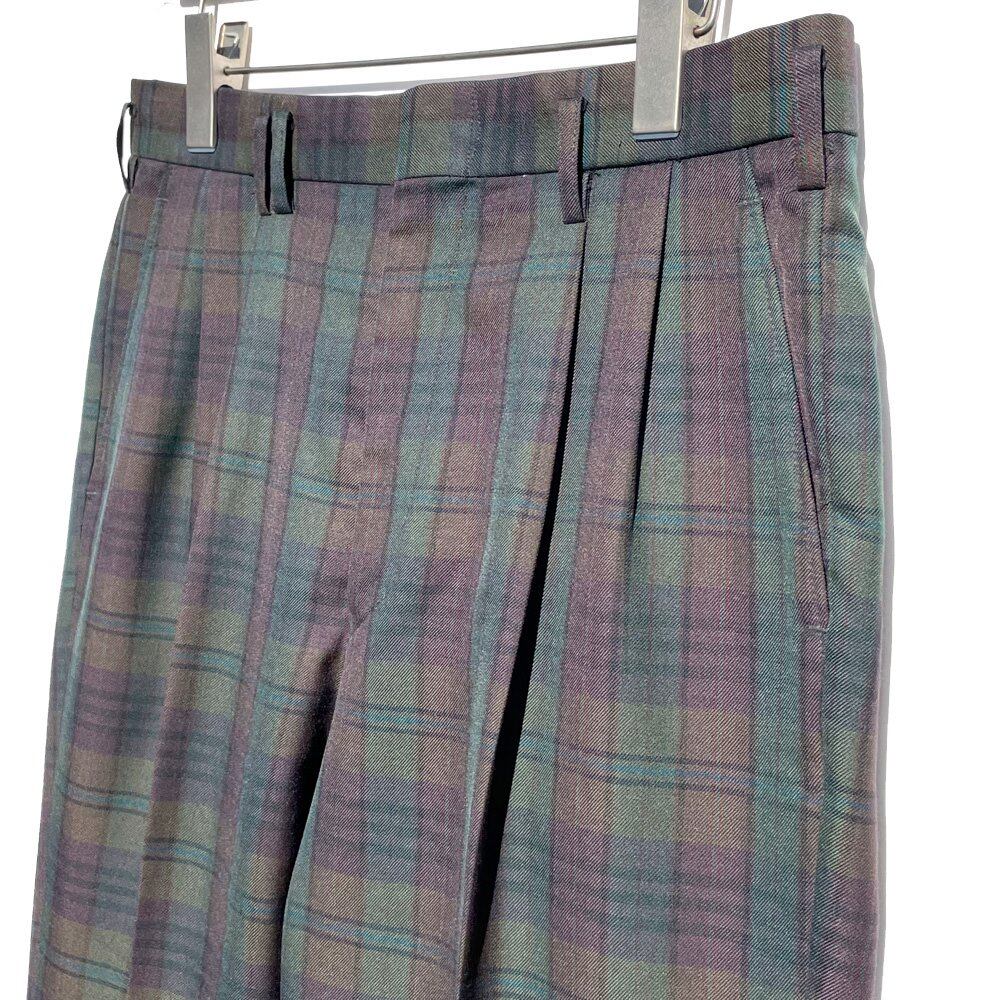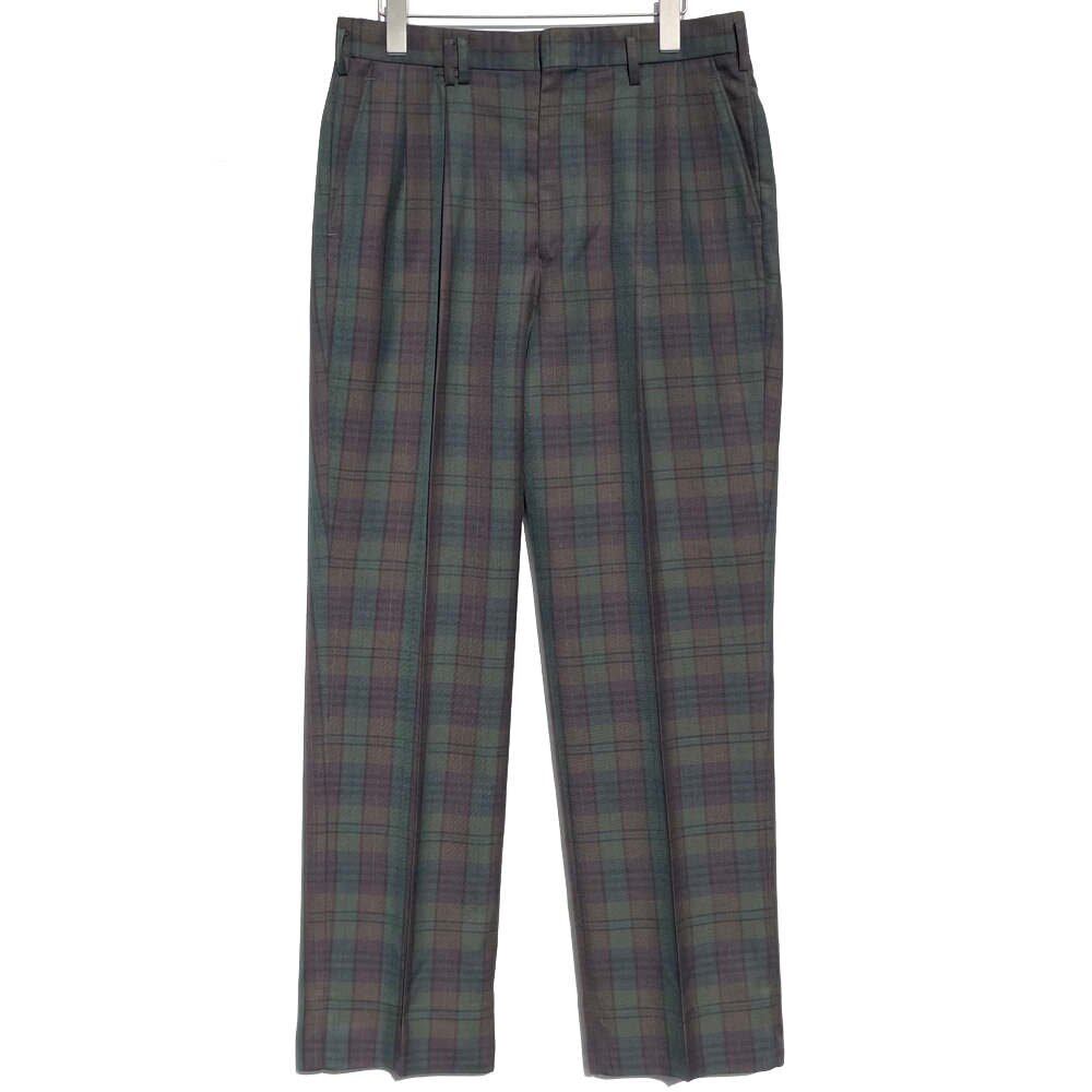Two-tuck trouser pants with a comfortable polyester / wool blend fabric that has a natural texture.