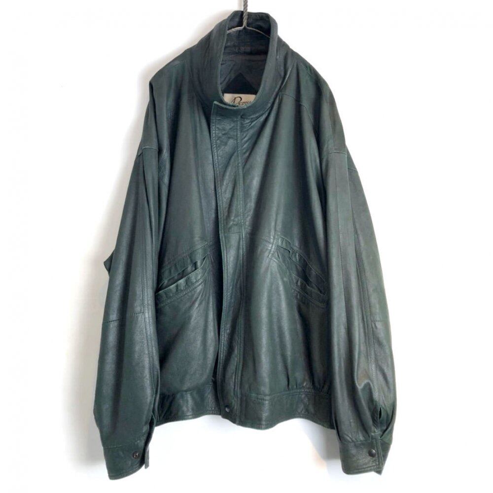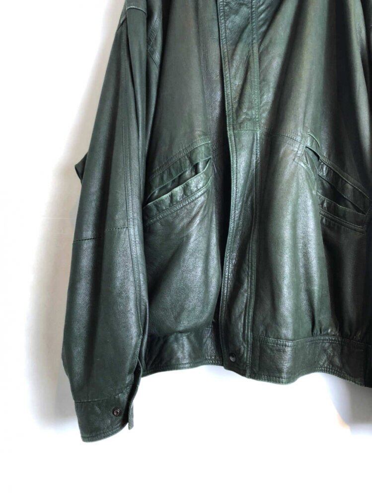 90s leather jacket A relaxed over-silhouette leather jacket with a deep green color that makes you feel relaxed. The thin, light and smooth texture of the leather makes it a perfect choice for spring haori.