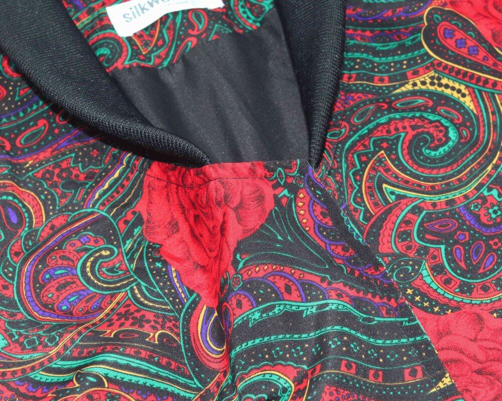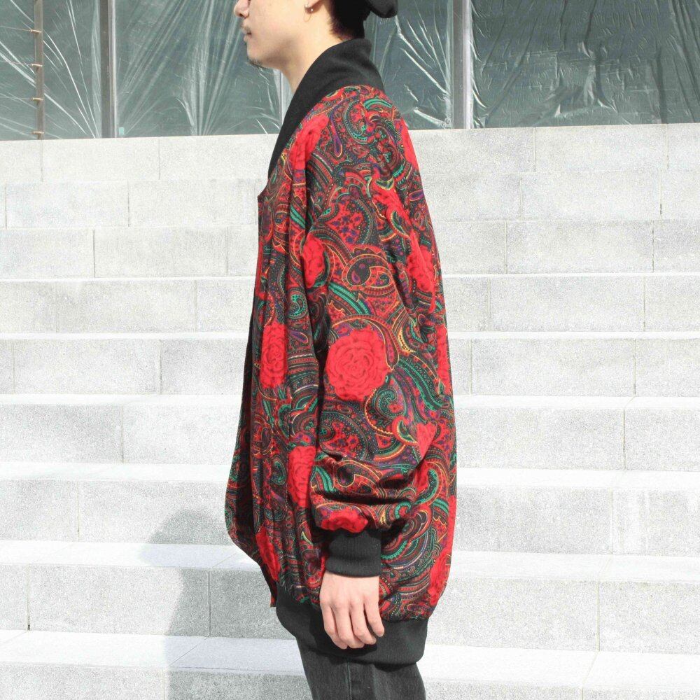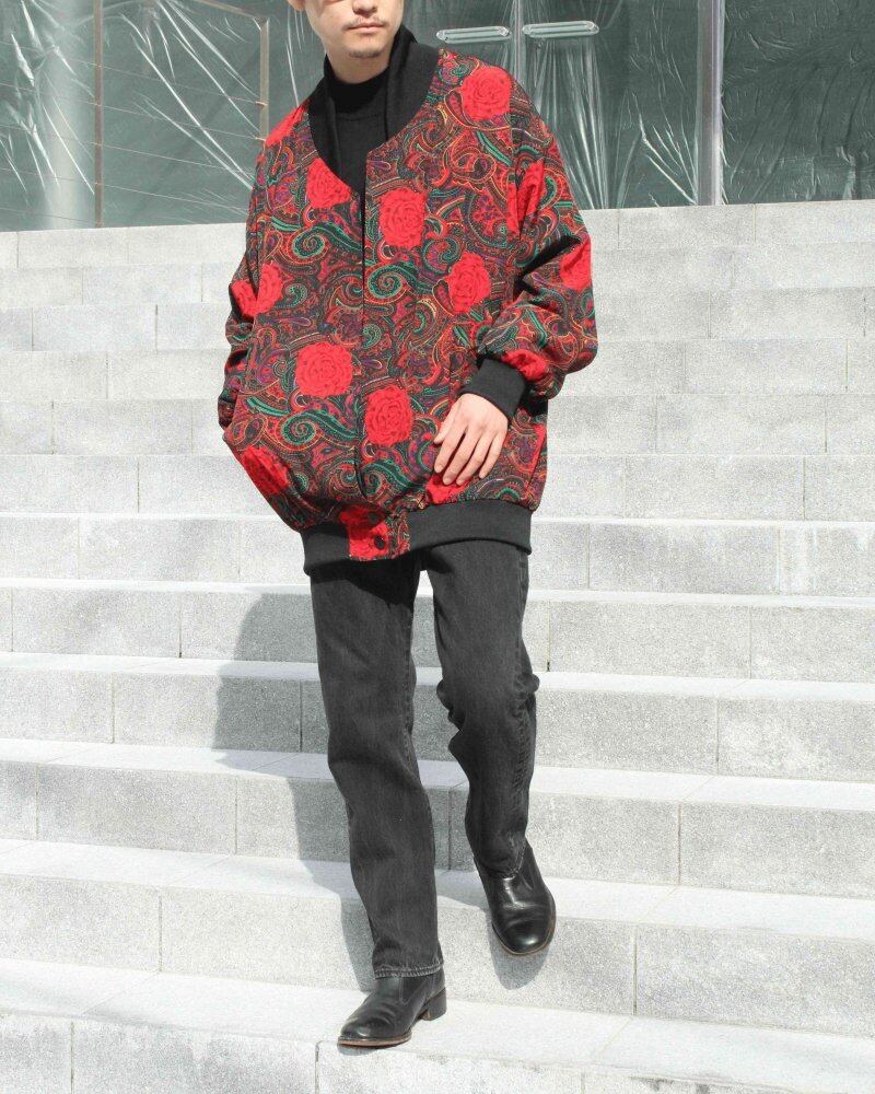 A jacket made of silk fabric from the 1980s. A high-impact print that combines a light fabric with roses and paisley patterns. It is a piece that seems to be of this age with a silhouette design that looks like a combination of a tailored jacket and a bomber jacket. A vertically long silhouette with a relaxed and relaxed feeling. It is in good condition subjectively. Since it is an old product, it rarely deteriorates over time. Please check the photo and purchase after acknowledging the characteristics of vintage.