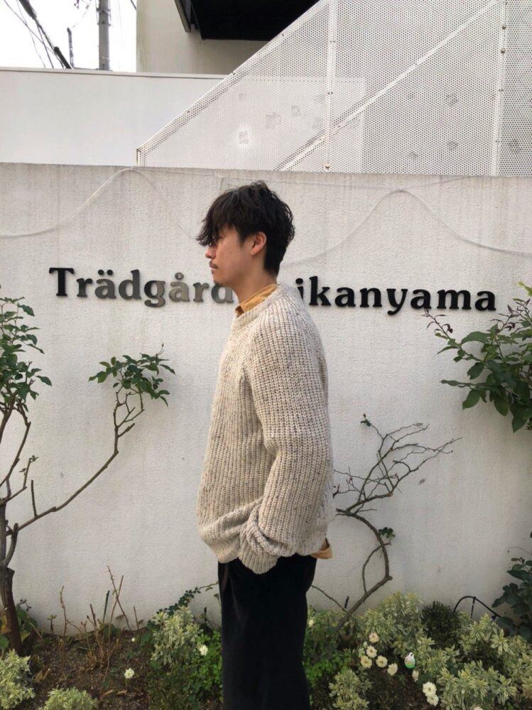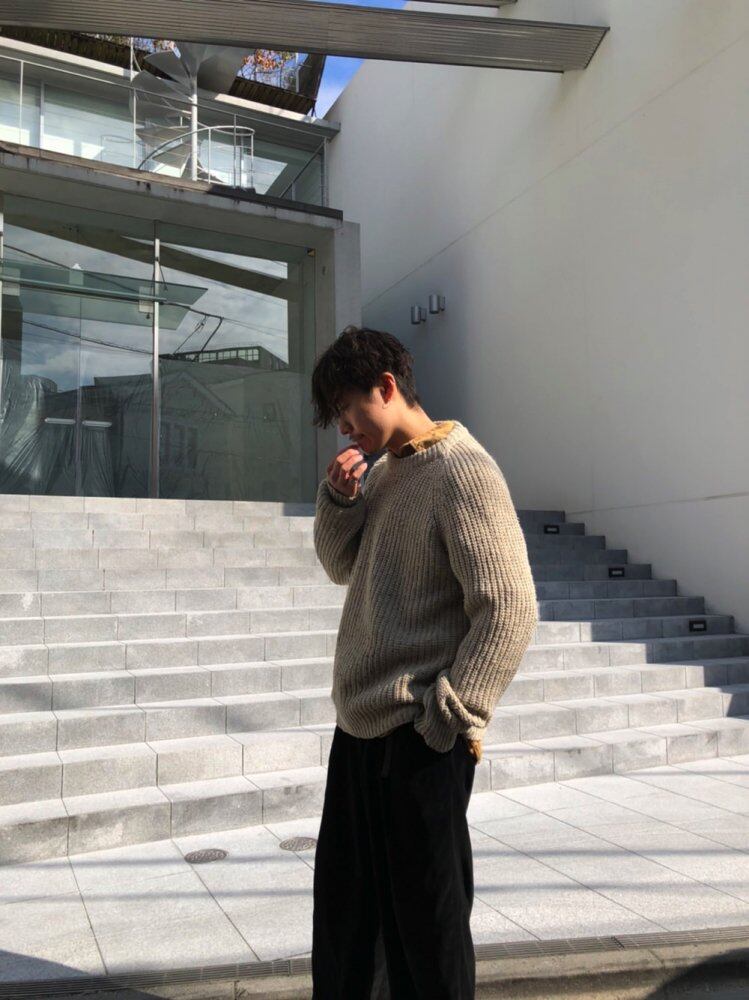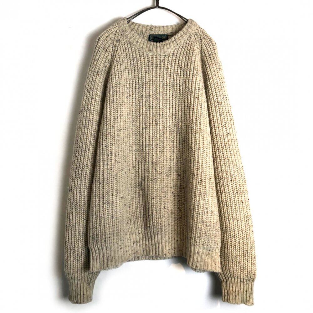 90s crew neck sweater Acrylic x wool sweater for spring with a smooth feel. Oatmeal color with a mature and calm atmosphere.