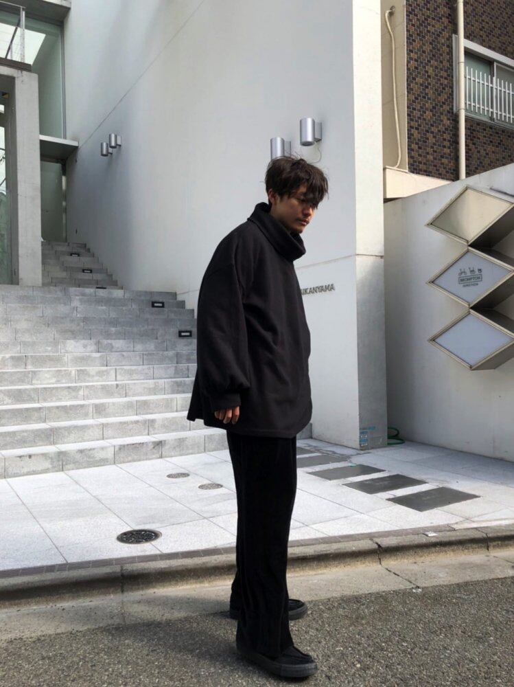 A 90s sweatshirt with an interesting loose and voluminous super loose silhouette. The voluminous and loose turtleneck has a nice atmosphere.